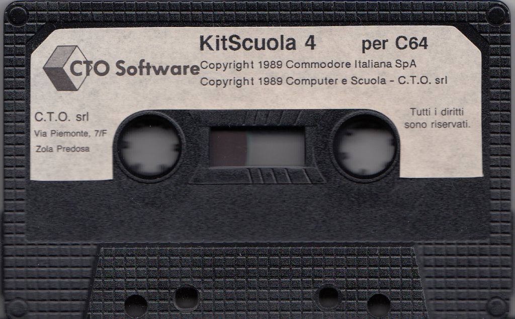 Kit Scuola 4 - Prima Edizione Settembre 1989 Il numero 4 è basato sui programmi di Commodore Educational Software e dello Studio Pontaccio, già autore dei giochi della trasmissione Tandem (Super G). Contenuto della Cassetta: Problemi