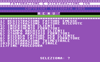 Gestione Fatture e I.V.A. - Visiodata, 1985 Programma Made in Italy per classifica le fatture di carico e scarico con le varie aliquote I.V.A. |
