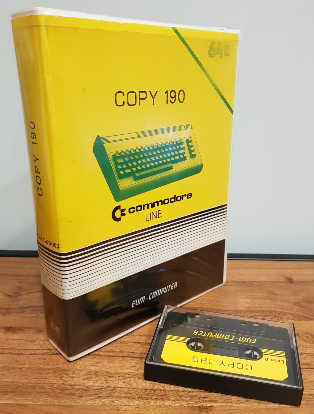 E.V.M. - Copy 190 Utility per il trasferimento di programmi tra le periferiche del Commodore 64. Sia il lato A che B della cassetta contengono lo stesso programma. Con ogni probabilità si tratta della versione italianizzata del noto copiatore "Copy 190" realizzato dal tedesco Uwe Sthal nel 1984. Il valore "190" utilizzato per nominare il programma, identifica il numero massimo di blocchi su cui può funzionare l'utility. |