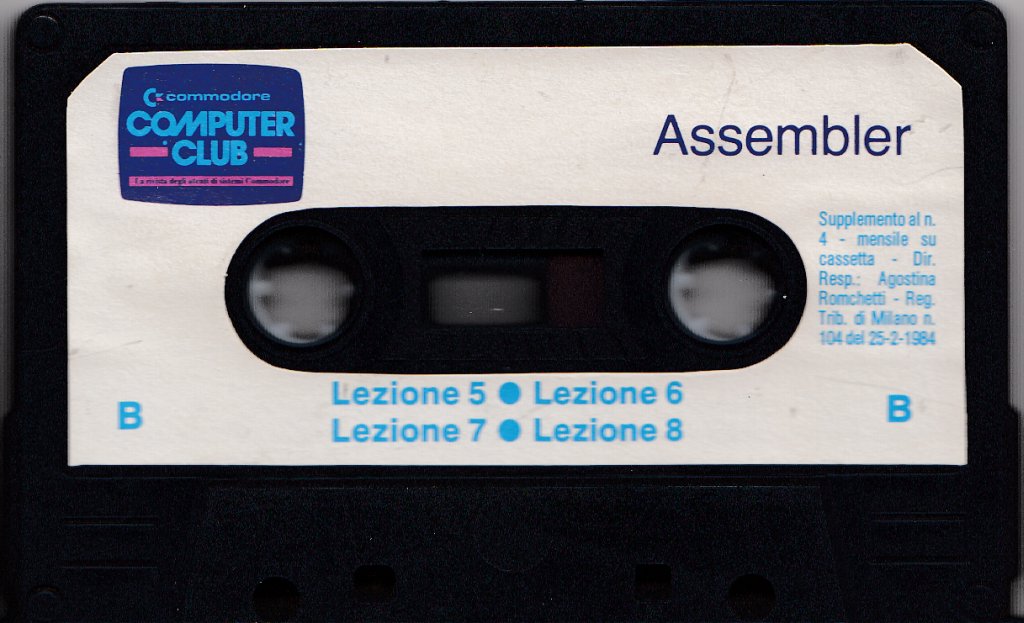 Corso di Assembly su nastro realizzato da KH e pubblicato da Systems Editoriale. Supplemento al mensile numero 4 di Commodore Club. |