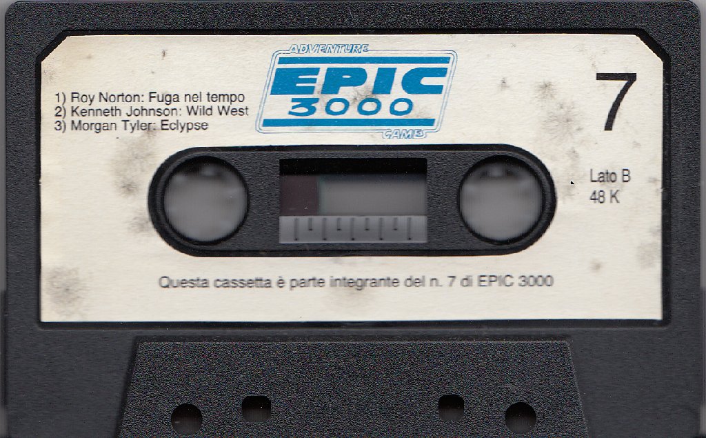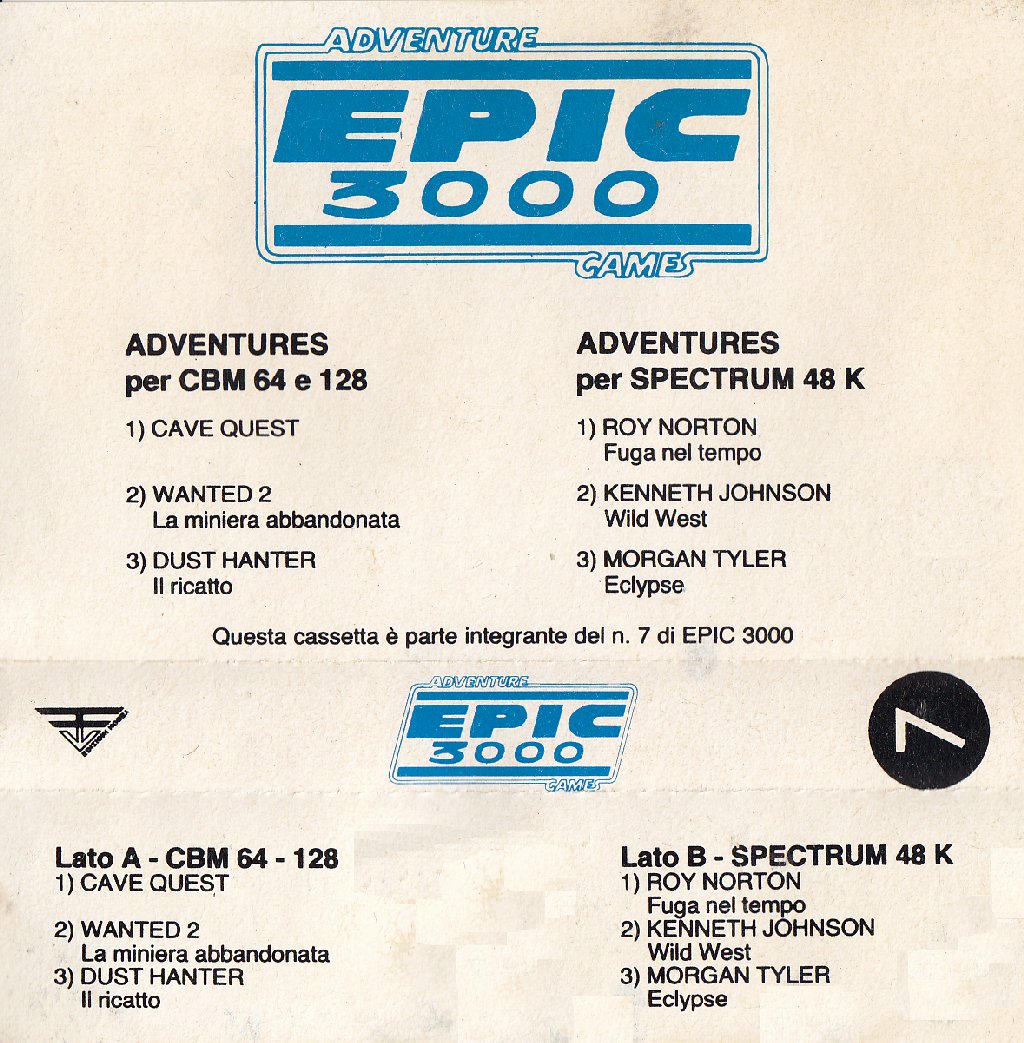 Nota: All'interno dell'archivio zip relativo alle scansioni è stato incluso anche l'avviso col quale la casa editrice rendeva noto che il numero 7 di Epic 3000 avrebbe concluso la collana, promuovendo contestualmente la nuova denominata "Viking". L'annuncio avvisava i lettori anche che le successive avventure, pubblicate con la nuova collana, sarebbero state realizzate interamente in linguaggio macchina. Lo stesso messaggio è stato incluso nel programma di presentazione registrato sulla cassetta. |