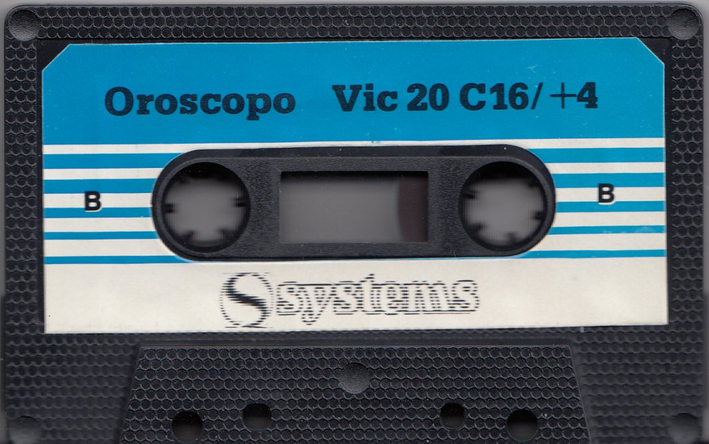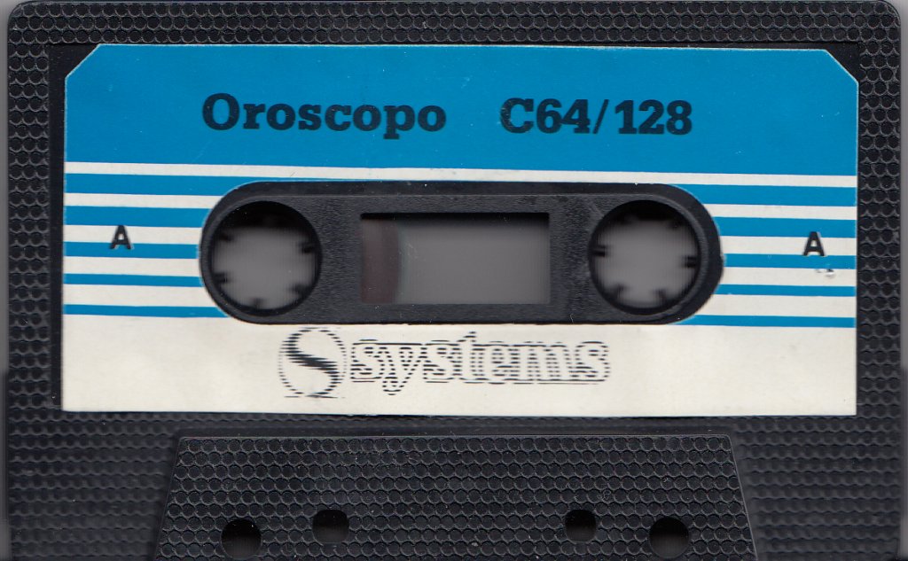 "Oroscopo" edito da Systems Editoriale per i Computer C64, Vic20 e C16/+4. Autori del programma: Luigi Ambrosi, Roberto Didoni e Marco Facinani. |