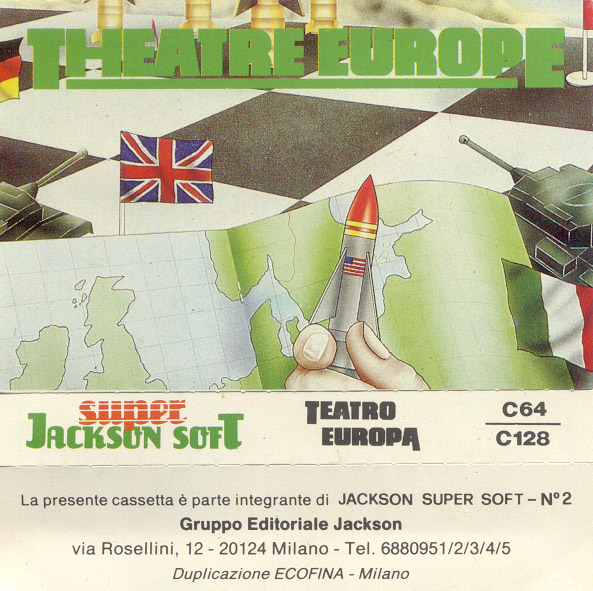 Questo interessante gioco di strategia, ambientato ai tempi della cortina di ferro, ci trasporta in un mondo sull'orlo della 3° guerra mondiale. Versione italiana di Theatre Europe (PPS - Personal Software Service, 1985), ufficialmente curata dalla Jackson e distribuita in edicola. |