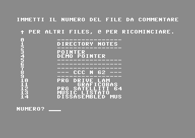 Da questo numero in poi la rivista comincia a proporre anche i listati pubblicati su CCC. In particolare, il lato b di questo floppy contiene i listati di CCC numero 62 (Marzo 1989). |