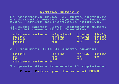 (*) Il programma è incluso in forma completa, assemblando i file dei numero 10 e 11, secondo le istruzioni contenute nella rivista. Per caricare la lezione: