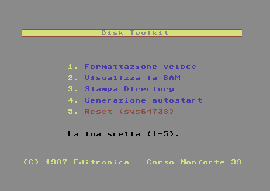 Commodisk - Anno II numero 19 (Marzo 1987) Contenuto del Floppy Disk: