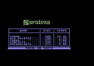 Molte copie di questo numero distribuite nelle edicole presentavano difficoltà di caricamento. Tutti i giochi quindi sono stati reinseriti dalla Systems nel numero 3 della collana per riparare all'errore. La compilation si segnala per la pubblicazione di CONAN, avventura a scelta multipla che ha raggiunto inaspettate vette di popolarità (in condivisione con il predecessore Avventura 1). Conan e Avventura 1 differiscono tra loro per la parte testuale (nomi di personaggi, luoghi, eccetera) mentre il sistema di gioco resta invariato. Sono state fatte molte ipotesi circa il legame tra i due titoli ma in mancanza di riscontri oggettivi, nessuna di queste può essere considerata risolutiva. |
