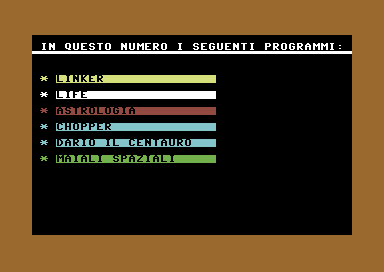 (*) Un programma simile è stato pubblicato dall'editore pirata Mantra: Mantra Software: Oroscopo e Bioritmi