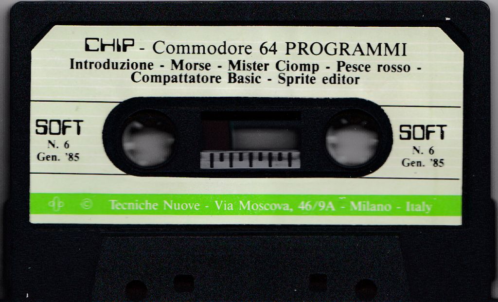 SOFT numero 6 - Gennaio 1985 NB: L'intro contiene un bug, seppur ininfluente: il programma richiede la pressione del tasto RUN/STOP. Qualsiasi altro tasto produrrà l'errore ?RETURN WITHOUTH GOSUB ERROR IN 288 Contenuto della Cassetta: