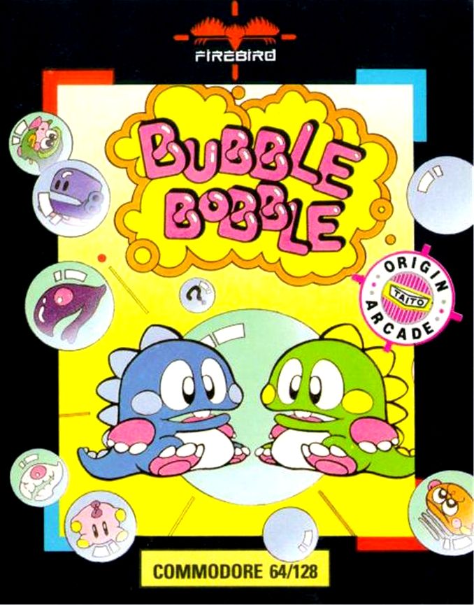 Questo è il gioco che piu' di tutti , IMHO, ha "portato la salagiochi in casa" dei possessori di C64. Non riesco a dimenticare l'emozione della prima volta che l'ho lanciato, e l'incredulità nell'avere a casa una simile meraviglia, dopo aver dilapidato ingenti patrimoni in monetine giocando al coinop :). Reputo questa una delle conversioni meglio riuscite sul 64, oltre alla grafica e alla musica viene perfettamente rispettata la cinetica del movimento dei draghetti, il salto, l'interazione del draghetto con le bolle e delle bolle tra loro...... insomma mantiene tutto il fascino e la giocabilità del coinop, davvero un grande gioco.