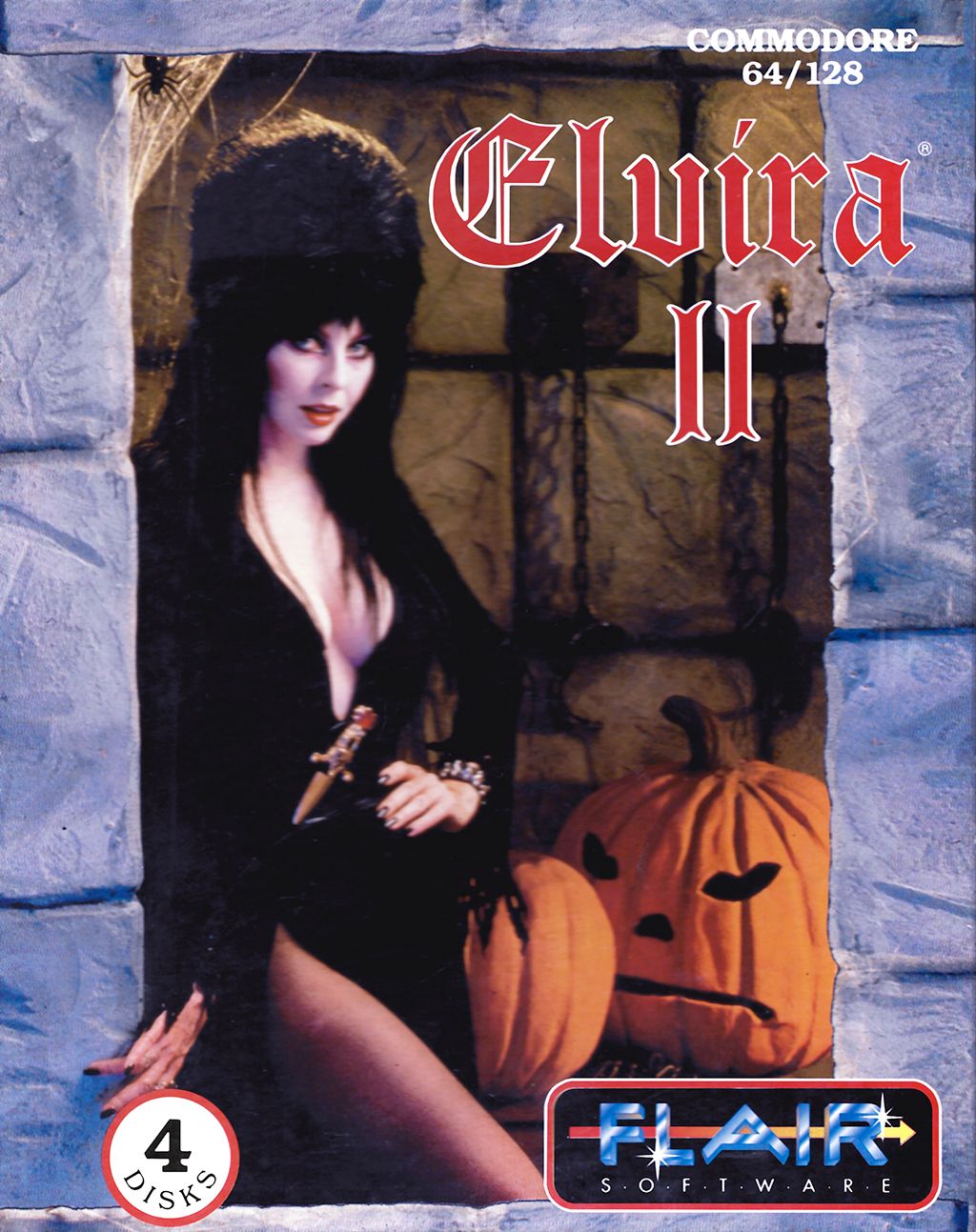 📌Nota della redazione L'edizione Commodore 64 è denominata solo Elvira II senza sottotitolo "The Jaws of Cerberus". Questo è dovuto alla detenzione dei diritti sul nome da parte di Accolade, qui non interessata in quanto la distribuzione fu eseguita direttamente da Flair Software. Distribuzione e traduzione italiana a cura della Leader. 12 Aprile 2025: nuova edizione "Elvira II - Versione Oro italiana".