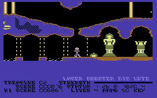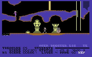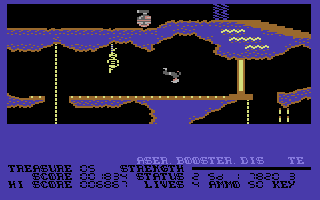 Nel 1985 avevo otto anni. Questo gioco uscì naturalmente in edicola, con il nome "Catacombe". Le istruzioni come sempre vaghe non davano alcun indizio su quale fosse lo scopo ultimo, e così mi limitavo a girovagare per questi cunicoli densi di inside, tra i colori inquietanti ed una colonna sonora fatta per lo più di stupri del sid. A completare l'atmosfera disturbante un clone che spesso seguiva il personaggio principale imitandone ogni mossa, pozze di acido con lunga e lenta animazione di decesso, e per finire la scritta "AMPLIFICATORE LASER" che andava creandosi pian piano secondo logiche inafferrabili. Ora, quella scritta era l'unica cosa su cui si potesse speculare, così immaginavo una corsa disperata per costruire un grande cannone laser che permettesse al protagonista di creare un tunnel di uscita dalle catacombe. Erano decisamente anni meravigliosi (il gioco invece era mediocre :) )