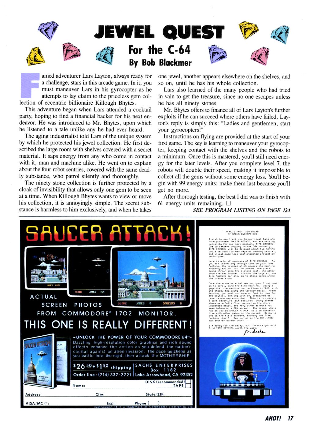 La preoccupazione per la crescente diffusione della pirateria informatica spinge Jim Sachs ad allontanarsi dalla produzione per Commodore 64, portandolo ad interrompere la lavorazione del suo progetto successivo: Time Crystal di cui ci resta un demo comunemente reperibile sul web.